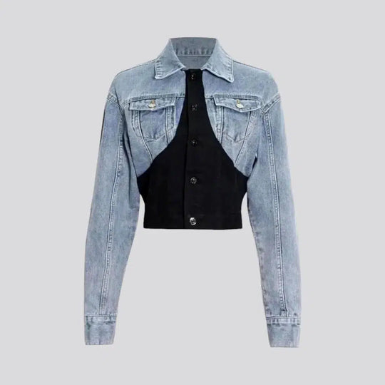 Trendy crop women's denim jacket